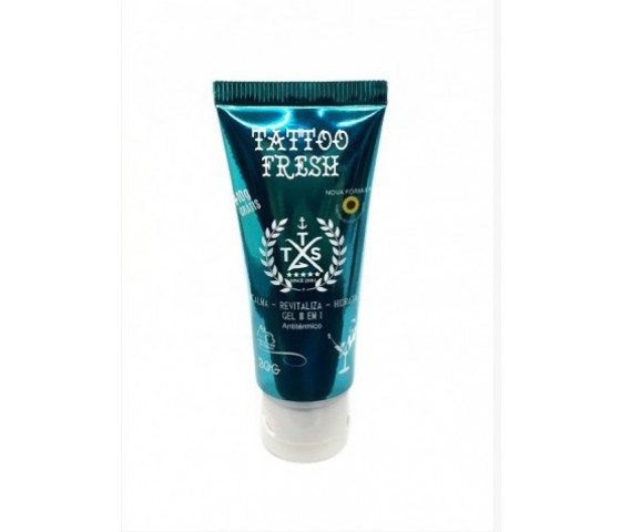 Cicatrizante Tattoo Fresh TTS. Produto com componentes ativos e naturais que acalma a pele, revitaliza e hidrata a elasticidade da pele ferida .Entra no processo de cicatrização muito mais rápido.